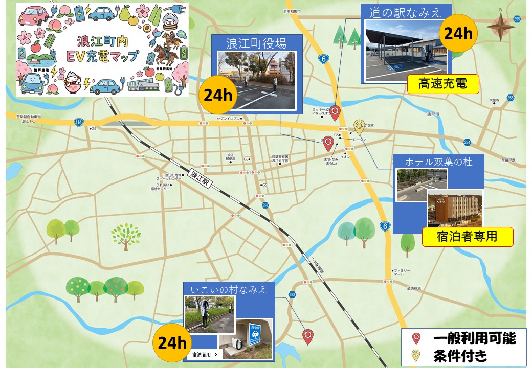 町内には各所に、EV充電器が設置されています。
