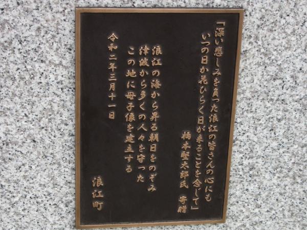 日本を代表する彫刻家橋本堅太郎氏より「母子像」が寄贈され、3月11日除幕式が執り行われました。