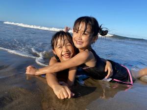 念願の海で大はしゃぎでした。身体全身で夏を感じれたようで本当に楽しそうでした。
