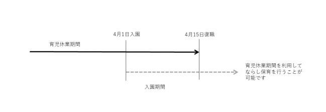 例2 母親の復職日が令和7年4月15日で、4月1日から入園承諾となった場合