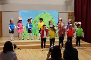 12月15日(木)、浪江にじいろこども園において園児たちが大好きな昔話や歌を題材に、「生活発表会」が行われました。園児たちは大きな拍手と温かい笑顔に包まれた会場で、お友達と息を合わせて、練習の成果を披露しました。