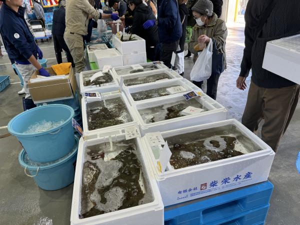12月9日(土)、請戸漁港において海の幸を販売する請戸魚市が開催されました。震災後、2回目となる開催で、訪れた人たちは「請戸もの」の活魚や水産加工品を、身を乗り出して選んでいました。